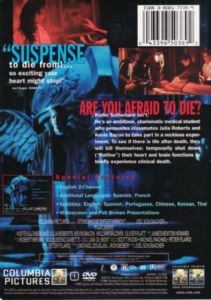 Five medical students want to find out if there is life after death. They plan to stop one of their hearts for a few seconds, thus simulating death, and then bring the person back to life. A science fiction thriller from the early 1990's with a star studded cast. |
